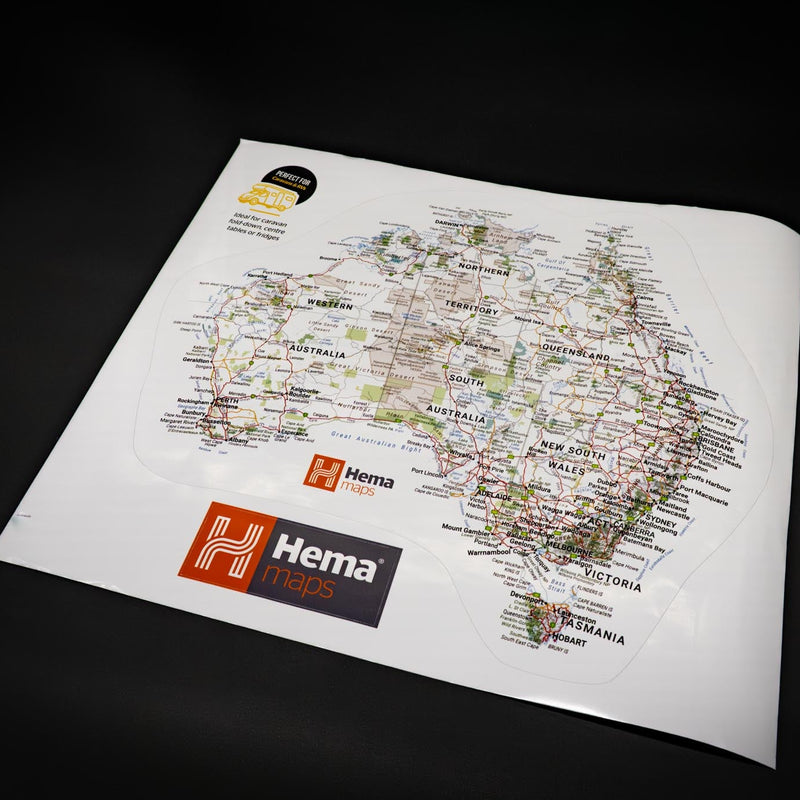 Add a touch of adventure to your setup with the Map of Australia Sticker from Hema Maps – perfect for caravan fold-down tables, camp tables, fridges, or anywhere you want to bring the spirit of travel to life.